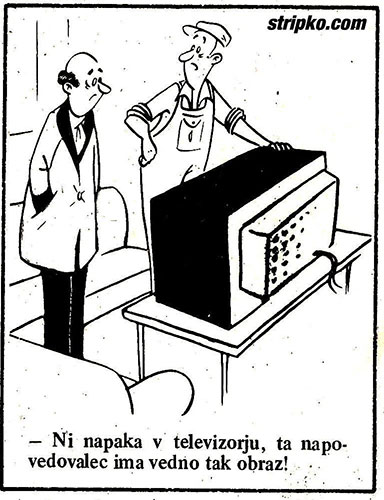 Home Smeh v sliki - Črno beli humor Ni napaka v televizorju 11 let ago 11 let ago - Črno beli humor, Smeh v sliki Ni napaka v televizorju by Stripko 11 let ago11 let ago 19views 0 -“Ni napaka v televizorju, ta napovedovalec ima vedno tak obraz!” Post PaginationPrevious PostPreviousNext PostNext napaka, serviser, televizorLike it? Share with your friends! 0 Posted by Stripko