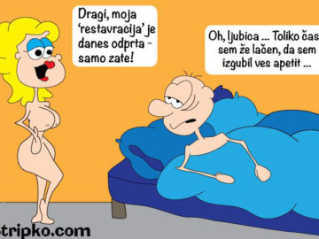 690 - Barvni humor, Smeh v slikiapetit, dragiApetit-“Dragi, moja RESTAVRACIJA je danes odprta samo zate! Oh ljubica… Toliko časa sem že lačen, da sem izgubil ves apetit…” by Stripko 11 let ago11 let ago