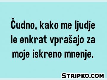 350 Sarkazemčudno, sarkazemČudnoČudno, kako me ljudje le enkrat vprašajo za moje iskreno mnenje. by Stripko 4 leta ago4 leta ago