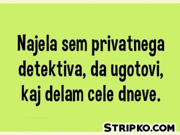 120 Sarkazemdetektiv, sarkazemNajela sem privatnega detektivaNajela sem privatnega detektiva, da ugotovi, kaj delam cele dneve. by Stripko 4 leta ago4 leta ago