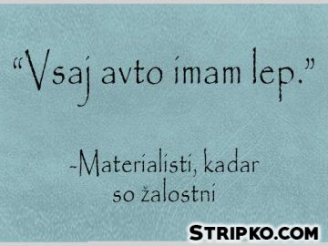 260 Sarkazemmaterialisti, sarkazemKako se tolažijo materialisti“Vsaj avto imam lep.” – Materialisti, kadar so žalostni by Stripko 4 leta ago4 leta ago