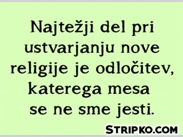 180 Sarkazemnove regije, sarkazemNove religijeNajtežji del pri ustvarjanju nove religije je odločitev, katerega mesa se ne sme jesti. by Stripko 4 leta ago4 leta ago