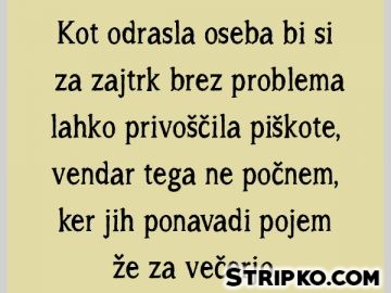 Kot odrasla oseba bi si za zajtrk brez problema lahko privoščila piškote, vendar tega ne počnem, ker jih ponavadi pojem že za večerjo.