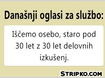 211 Sarkazemoglas za službo, sarkazemOglasi za službo danesDanašnji oglasi za službo: Iščemo osebo, staro pod 30 let z 30 let delovnih izkušenj. by Stripko 4 leta ago4 leta ago