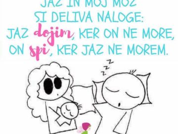 Jaz in moj mož si deliva naloge: Jaz dojim, ker on ne more, on spi, ker jaz ne morem.