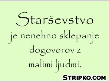 80 Sarkazemsarkazem, starsevstvoStarševstvoStarševstvo je nenehno sklepanje dogovorov z malimi ljudmi. by Stripko 4 leta ago4 leta ago