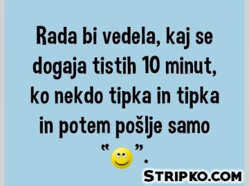 100 Sarkazemsarkazem, tipkanjeKaj se dogaja, ko nekdo tipka in tipkaRada bi vedela, kaj se dogaja tistih 10 minut, ko nekdo tipka in tipka, na koncu pa pošlje. by Stripko 4 leta ago4 leta ago