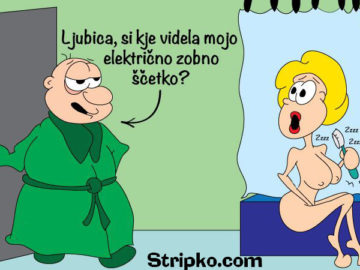 410 - Barvni humor, Smeh v slikizobna ščetkaZobna ščetka-“Ljubica, si kje videla mojo električno zobno ščetko?” by Stripko 11 let ago11 let ago